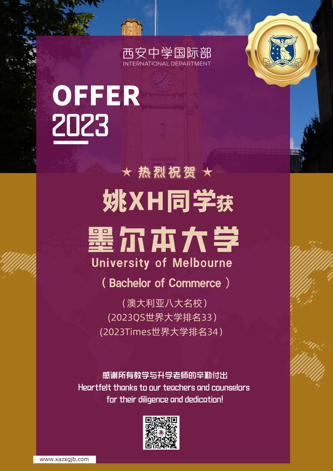 恭喜我校国际部A-Level课程方向姚同学、王同学、吴同学、唐同学收获澳洲五星名校墨尔本大学录取offer!