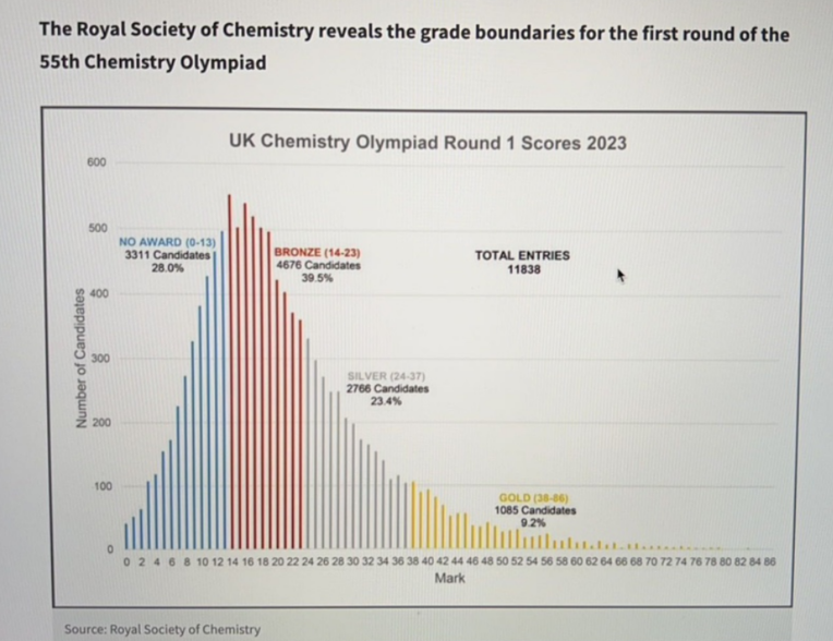 英国化学奥林匹克竞赛中的试题会激发并提高人们对化学认识,旨在为优秀高中生提供一个校内化学课程的延伸,培养他们的化学思维与能力,为进一步大学学术性学习和研究做好准备。从2018 年起英国皇家化学学会正式授权 ASDAN 中国办公室(阿思丹学院)成为英国化学奥赛在中国的承办单位,希望为中国学生提供更加丰富的化学学术活动并提高学生的解决问题能力,同时中国学生将有机会与英国学生同台竞技,统一考试,同等争取全球金、银、铜牌。