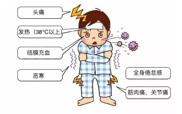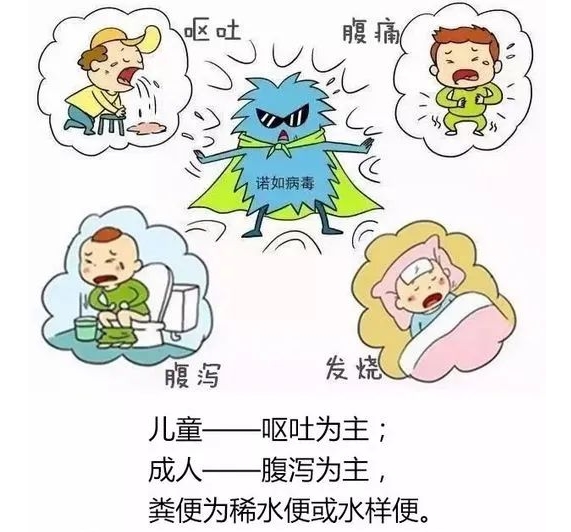 主要表现为呕吐和腹泻,其次为恶心、腹痛、头痛、发热、畏寒和肌肉酸痛等;患儿经常无预兆剧烈呕吐,呕吐物有感染性;粪便多为黄色稀水便,也有感染性;儿童感染主要表现为呕吐,成人则以腹泻为主。
