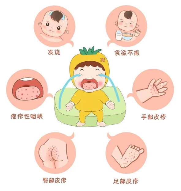 Tips:疱疹性咽峡炎:与手足口病相似,由肠道病毒感染引起,典型临床表现为发热、咽痛、口痛、咽峡部疱疹等。一般1-2天就能好转,家长需做好对症处理,如发现病情加重,及时就医。