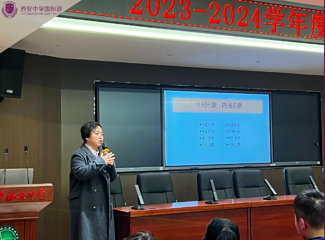 国际部副主任安秀萍、德育主管郑歆、教学主管刘雨欣及全体班主任参加会议,会议由郑歆老师主持。会议初始,郑老师对大家提出了新学期的期望和要求,并宣读了在上学期中表现优异的学生,激励大家学习先进、争当先进,进一步增强同学们的凝聚力和向心力。