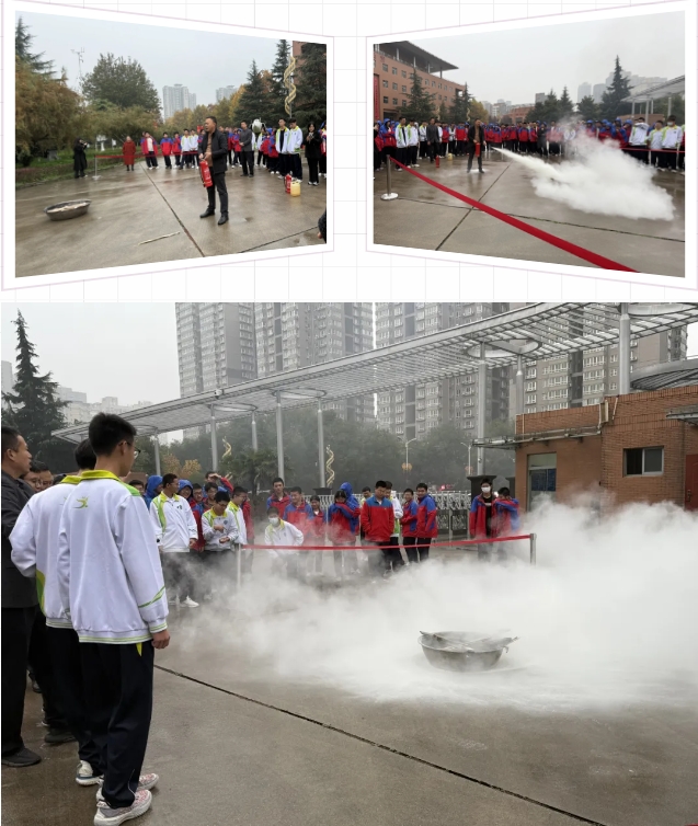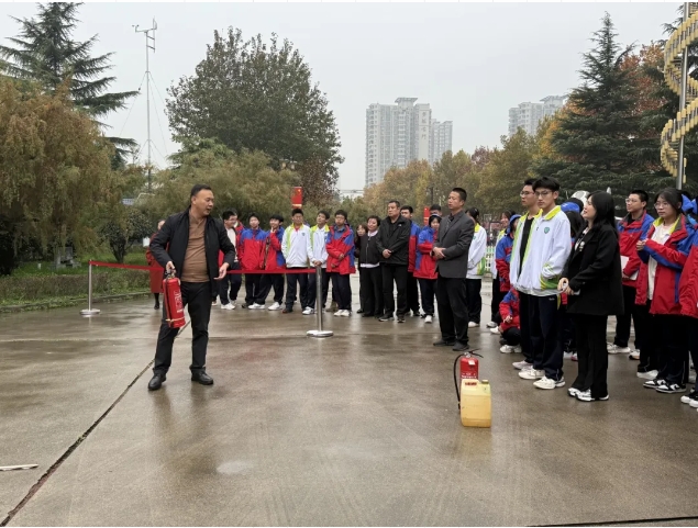 15日下午,我校安全处副主任王琳联络省宣安消防部门对高一、二年级各班安全管理员、国际部高一年级全体学生、宿管老师、物业后勤安保工作人员及部分教师进行了消防安全知识培训和现场灭火实操演练,并在现场通过“提、拔、握、压”的方式向同学们实践展示如何正确使用灭火器材,切实提高学生们面对火灾的防范能力。