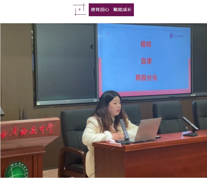 国际部课程中心负责人丁丽老师以期中反思与规划为主题,从学业反思与规划、生活作息与规划、个人成长与规划、行动计划的制定与执行、持续改进与目标实现等方面展开,提出了助力个人成长的策略及方法,干货满满的分享,让同学们深受启发,收获颇丰