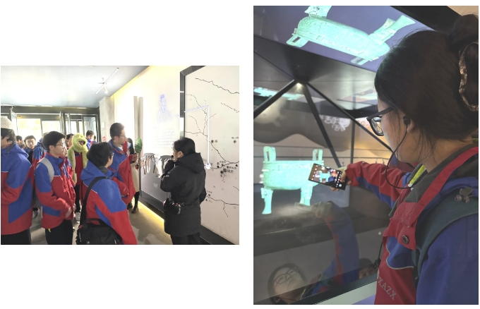 同学们来到周文化数字博物馆,在参观和解说中了解周人迁徙、周朝故事、礼乐制度、职官制度、青铜器等内容,大家仿佛穿越时空,在行走观看和图文解说中全面深入了解周王朝政治、经济、军事、文化、礼乐、周易、社会生活等周文化内涵和精髓。