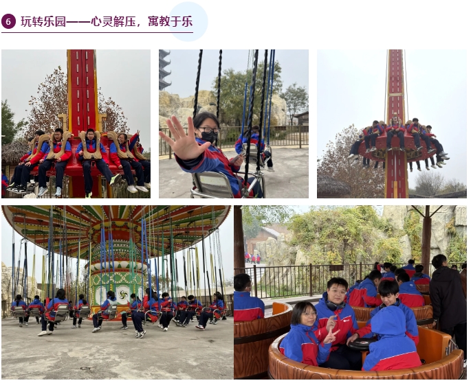在老师的带领下,很多学生积极参与封神乐园游戏挑战,沉浸式体验游乐项目集群,暂别繁重的学习压力,度过了一段紧张刺激却又温馨愉悦的美好时光。