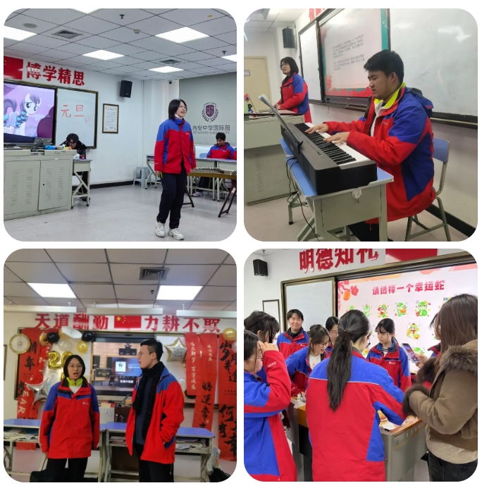新年伊始,万象更新。同学们满怀喜悦之情,提前对班级教室进行装饰布置,营造出浓郁的节日氛围,各班教室喜气洋洋,热闹非凡。国际部教学楼里,欢声笑语此起彼伏,一片欢腾喜庆景象。