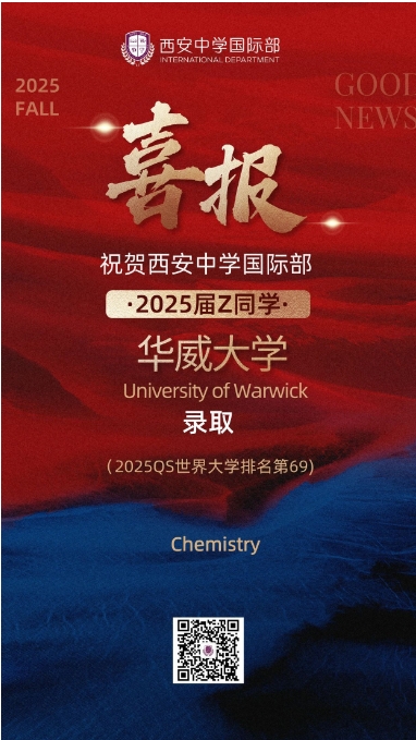 恭喜我校国际部张同学获英国华威大学录取+1!