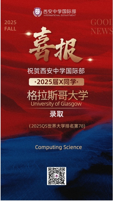 恭喜我校国际部徐同学、张同学获英国格拉斯哥大学录取+2!