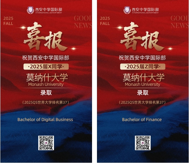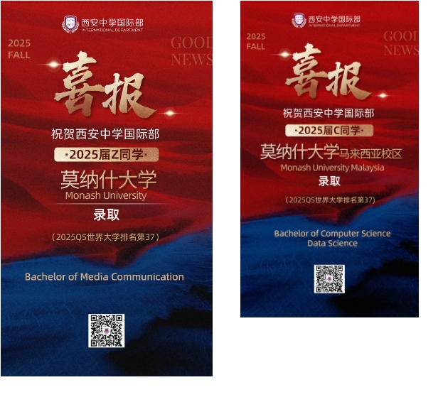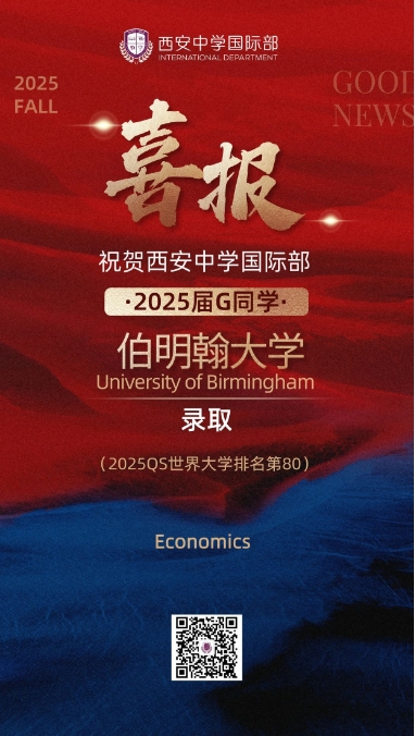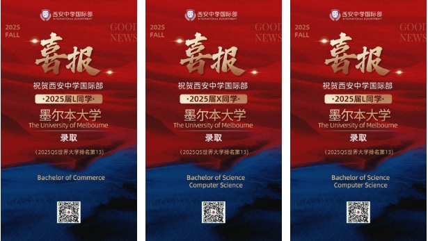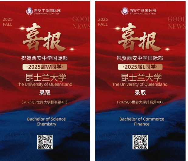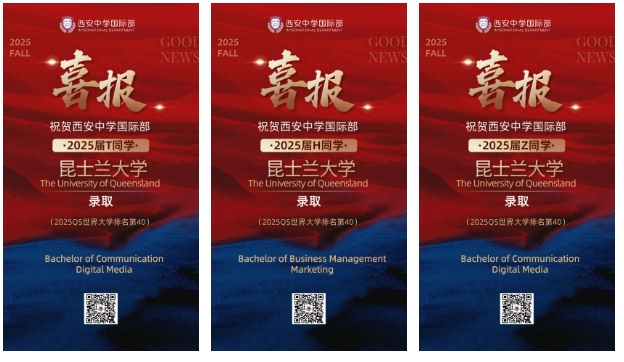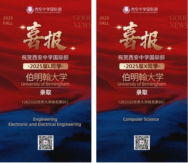 衷心祝贺获得心仪大学录取的西中国际学子们!每一份录取通知书的背后,都凝聚着师生们无数日夜的努力和坚持。西安中学国际部微信公众号即将推出优秀毕业生系列专访,我们将带您走进他们的世界,聆听他们从入学到毕业的点滴故事。青年学子的成长过程,也将成为我校发展的重要见证。