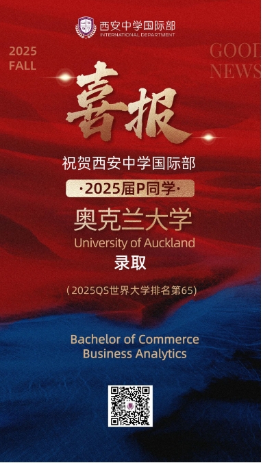 恭喜我校国际部庞同学获新西兰奥克兰大学录取!