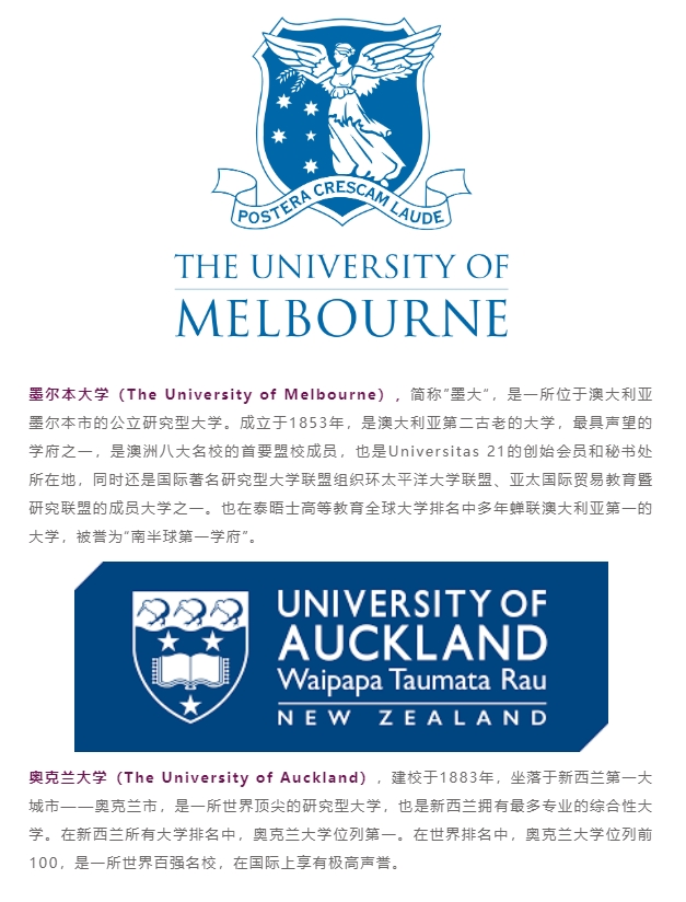 申请澳大利亚方向的学生包揽澳洲前5大学,新增多封墨尔本大学、悉尼大学、澳洲国立大学、莫纳什大学、昆士兰大学等;新西兰新增Top1奥克兰大学等一大批世界顶尖名校的Offer。