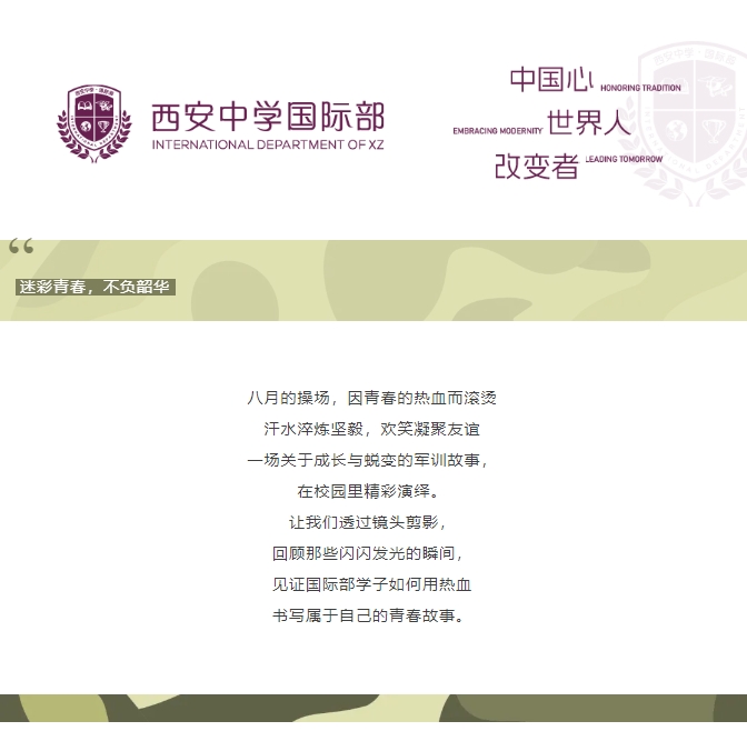 军训特辑|迷彩飞扬,青春当“燃” —— 西安中学国际部2028届新生国防教育实践活动记实