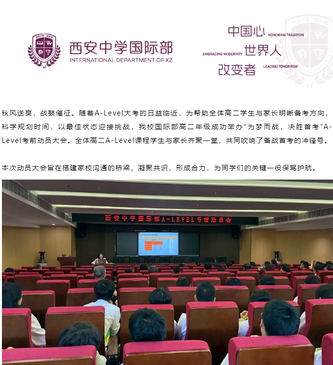 为梦而战,决胜首考 | 西安中学国际部A-Level大考动员大会圆满举行