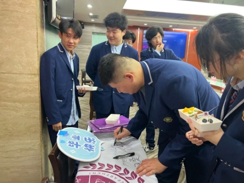 西安中学左宏莉副校长、西安中学国际处李晨光副主任、国际课程负责人尚骥霄老师出席,德育组组长郑歆老师、教学组长刘雨欣老师、李真老师、贾璐老师、班主任李天白老师、日语组刘璇老师、马红梅老师、王方老师、黄子都老师及所有日语班学生和家长参加,共同回忆高中时光,感受西安中学国际部这个大家庭的温暖,送上送别祝福。